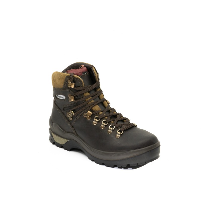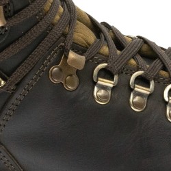 Tige cuir Dakar pleine fleur, Lacets plats 4 anneaux métal en D et 4 crochets métal ouverts, Languette et col Dakar et nubuck rembourrés, Doublure maille absorbante, Membrane imper-respirante Sympatex®.